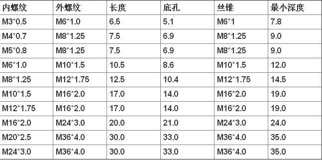 常用的公制规格:
